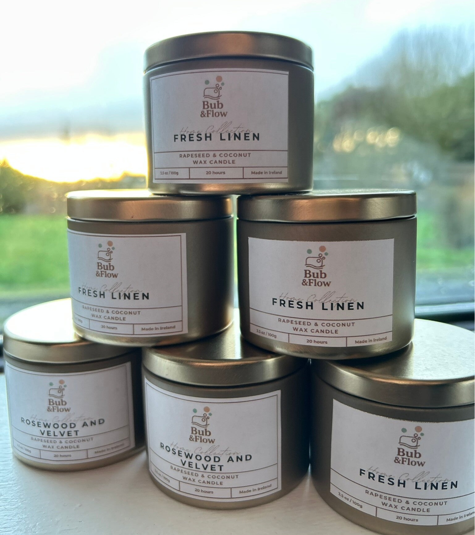 Our candles are made in small batches using a natural blend of rapeseed and coconut wax. Carefully scented and hand-poured, they’re designed to create a warm, calming atmosphere in any space.