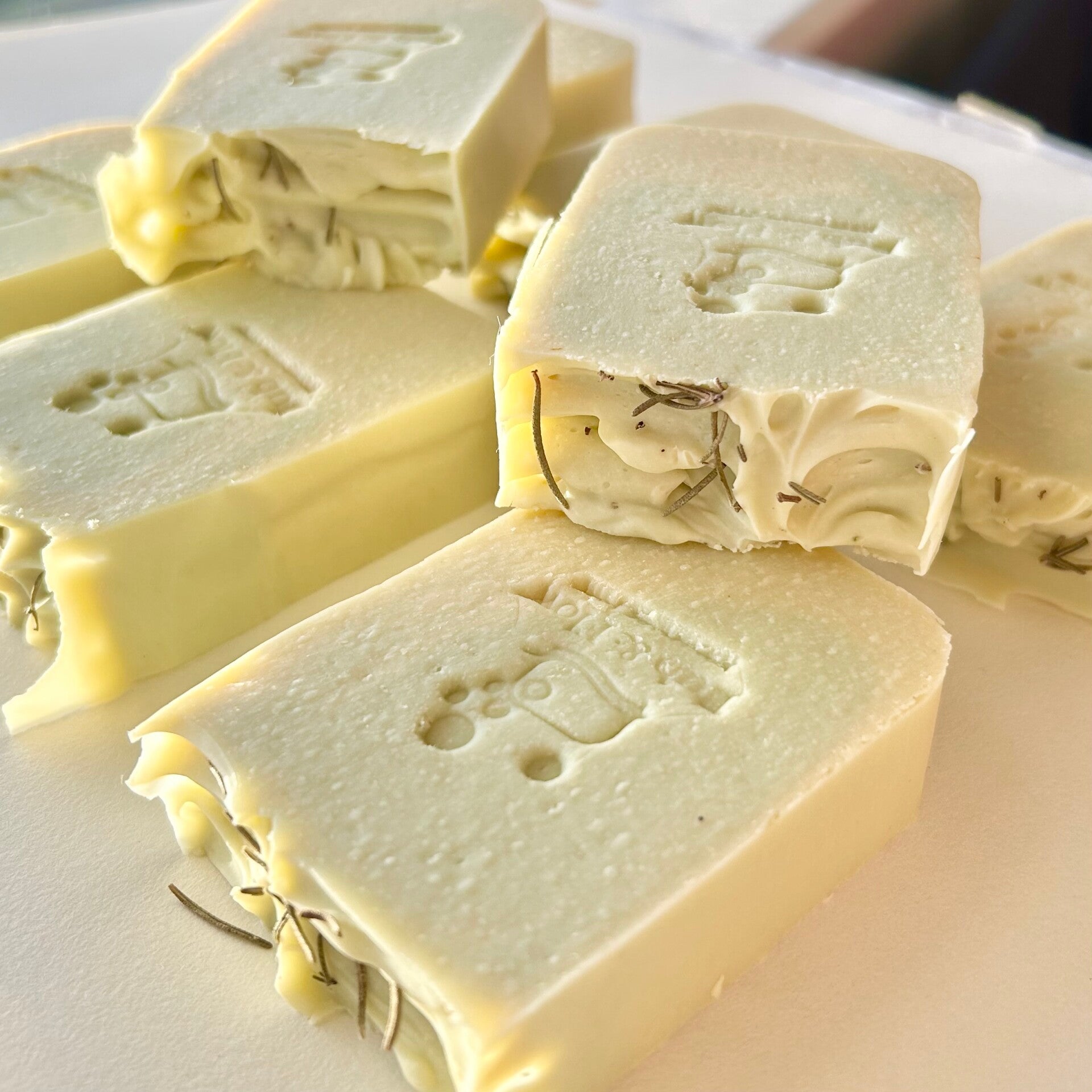 Ingredients: Beef tallow, sweet almond oil, coconut oil, olive oil, sunflower oil (rosemary-infused), certified sustainable palm oil, green clay, light yellow clay, myrrh essential oil, rosemary essential oil, bergamot essential oil.